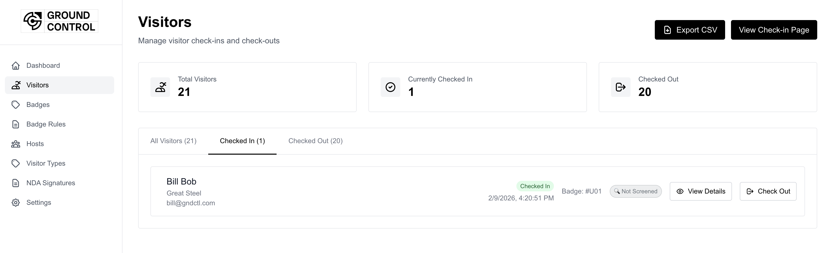 GroundControl's VisitorControl gives you everything you need to run a compliant visitor check in program, without any fluff. Our purpose built solution streamlines busy check in, digitizes log books, issues badges, performs sanctions screening, and alerts hosts. No expensive label printer ink needed.